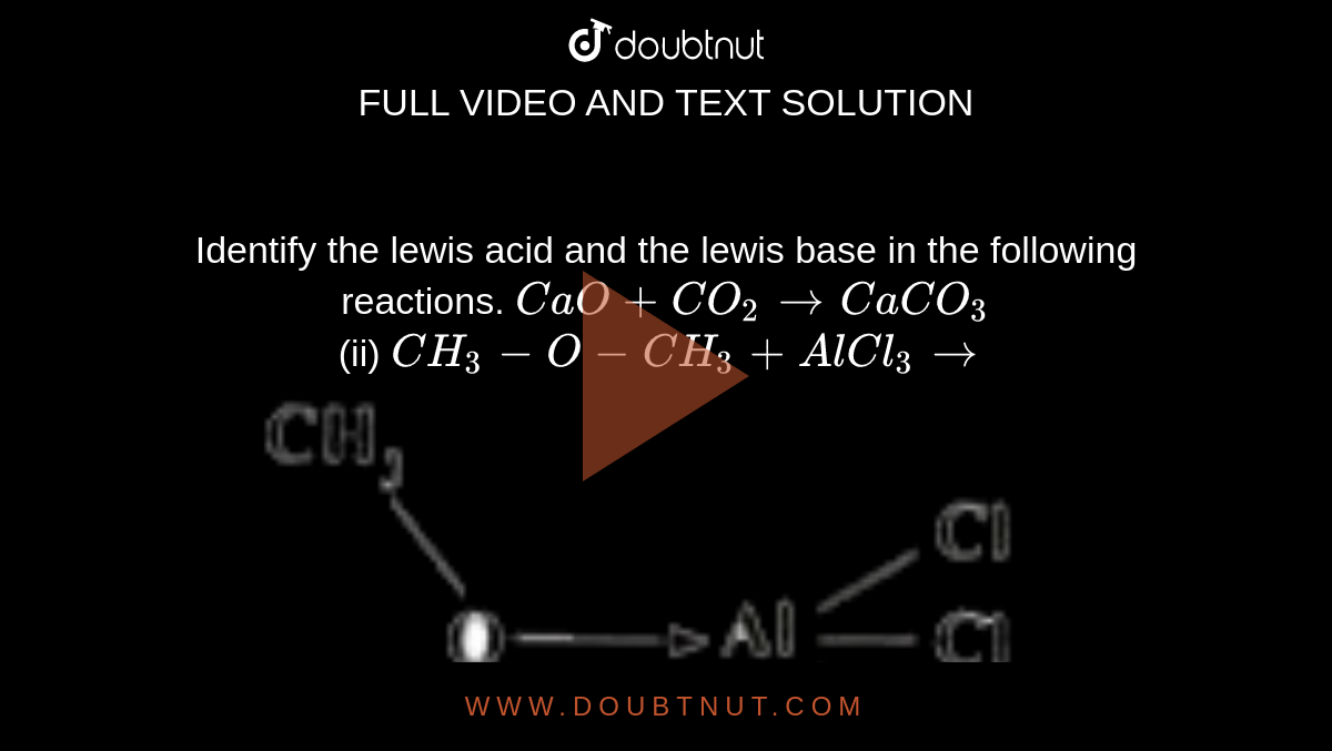 Identify The Lewis Acid And The Lewis Base In The Following Reactions Cao Co2 To Caco3 Ii Ch3 O Ch3 Alcl3 To |